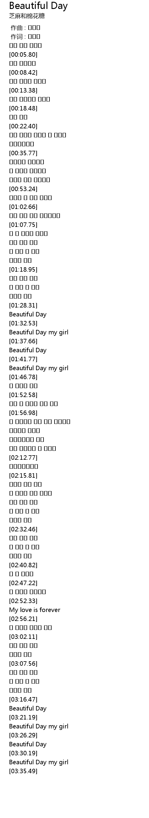 | [03:31.31] | Beautiful Day my girl |
