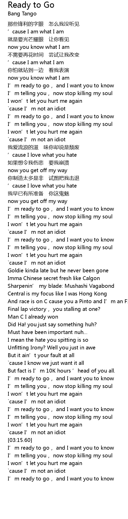 | [03:02.05] | I' m ready to go, and I want you to know |