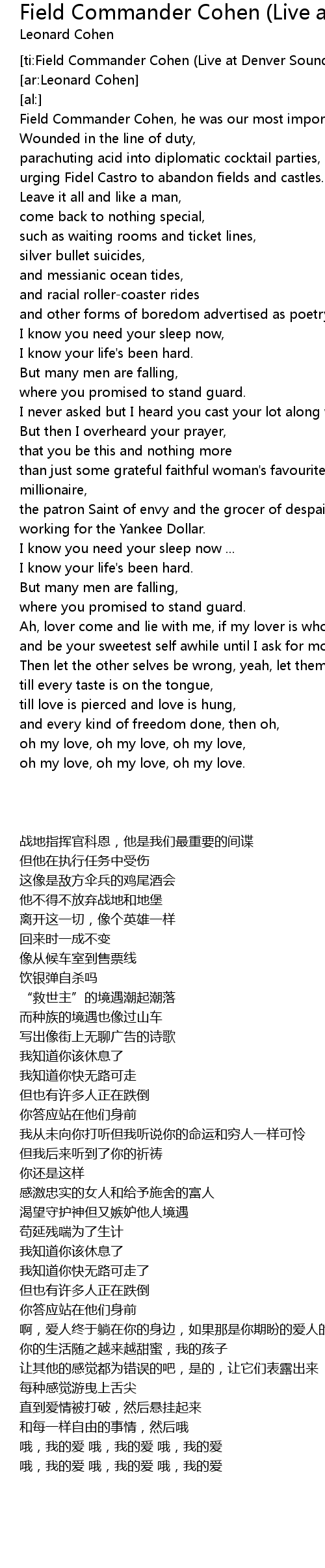 [ti:Field Commander Cohen (Live at Denver Soundcheck, 2012)] |