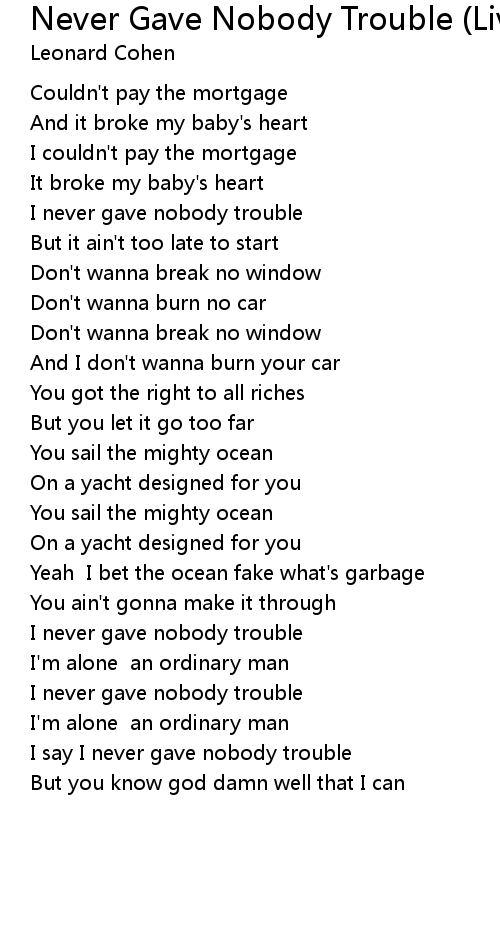 I say I never gave nobody trouble |