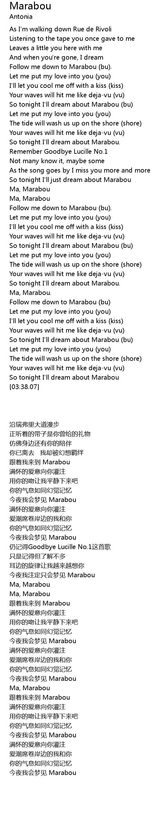 [02:55.99] So tonight I'll dream about Marabou (bu)