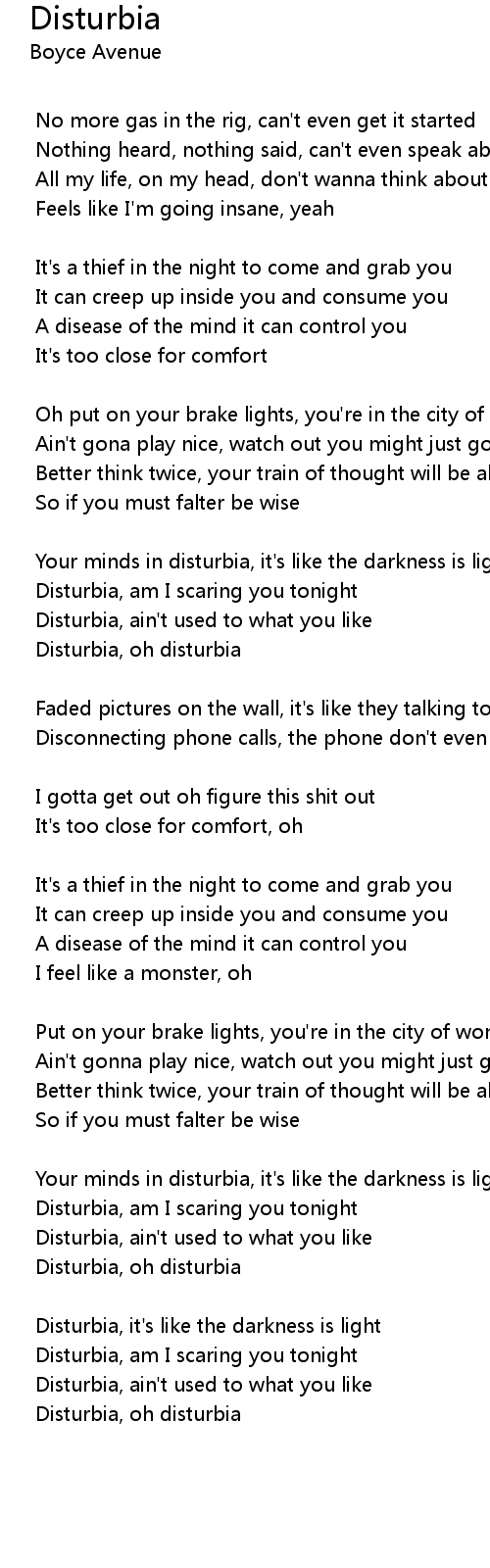 | Disturbia, am I scaring you tonight | |