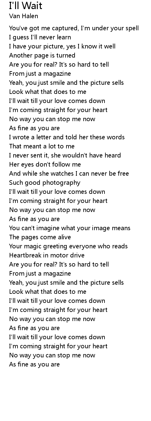 I'll wait till your love comes down |