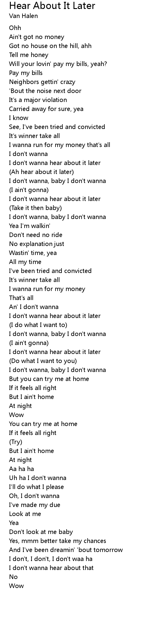 Hear About It Later Lyrics