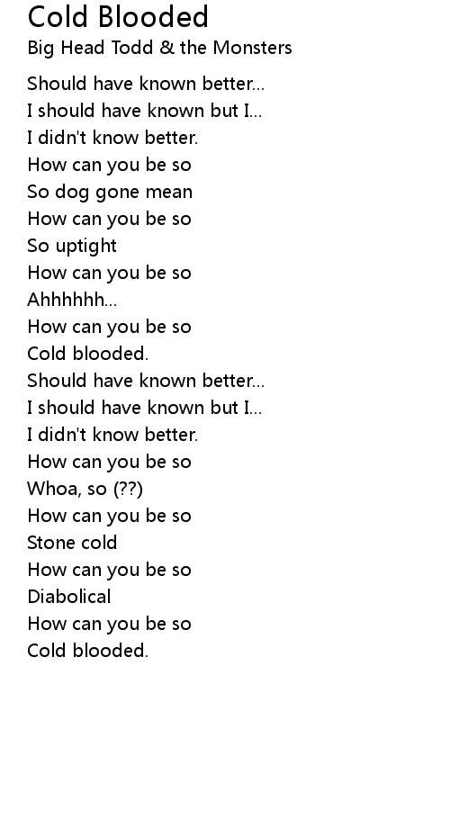 | Song | Cold Blooded |