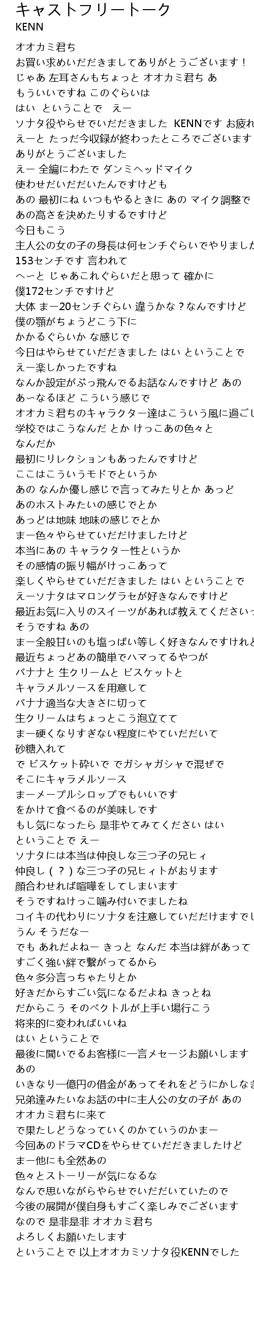 | [03:59.85] | ということで 以上オオカミソナタ役KENNでした |
