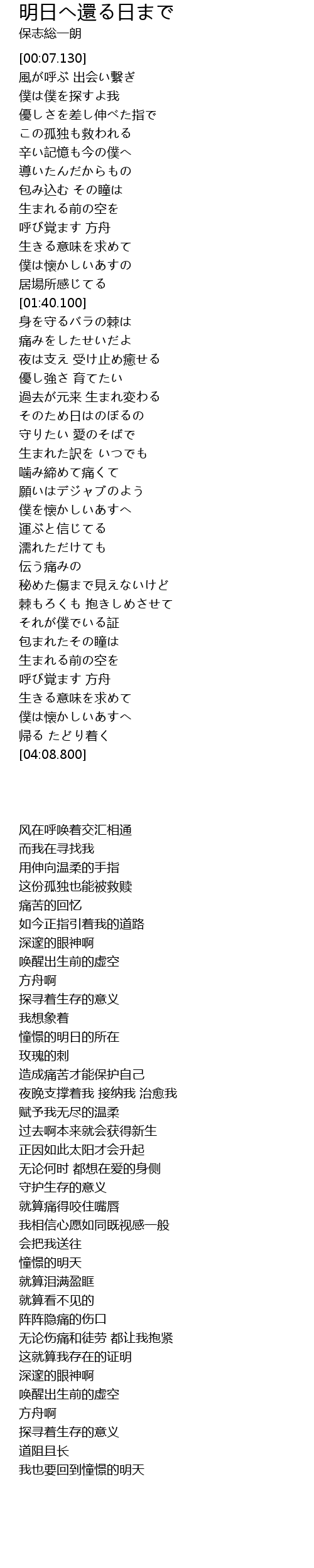 | [03:49.280] | 生きる意味を求めて |