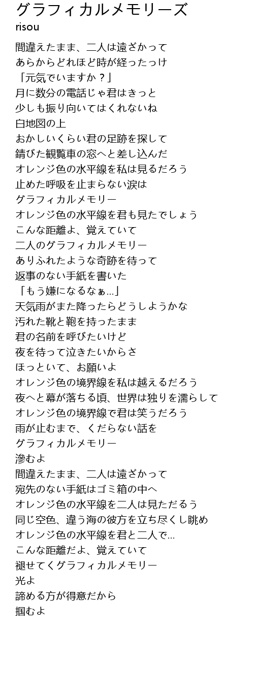 | [01:25] | オレンジ色の水平線を君も見たでしょう |