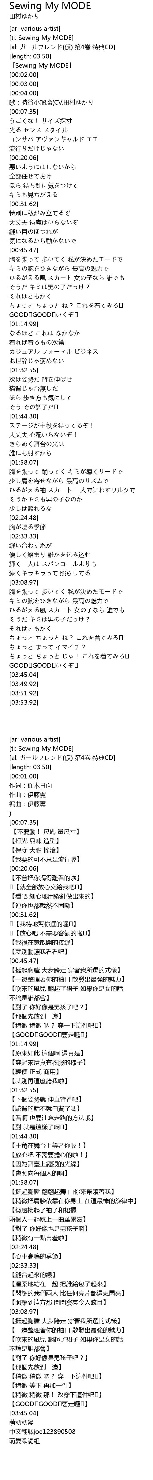 | [00:01.00] | 「Sewing My MODE」 |