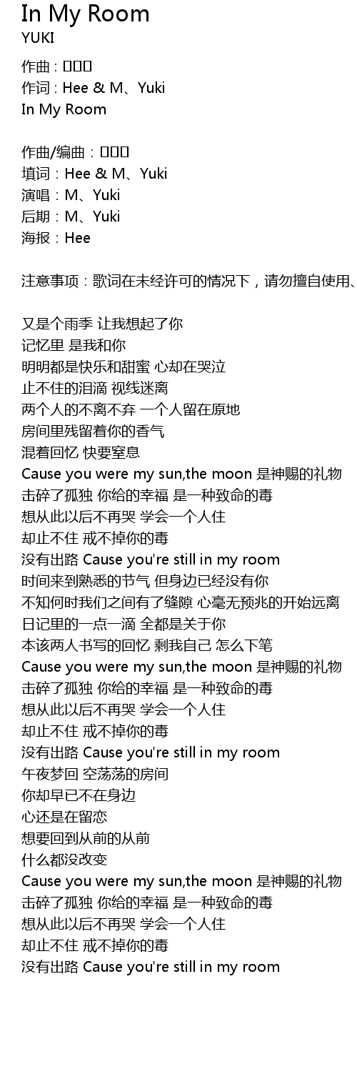 | 注意事项:歌词在未经许可的情况下,请勿擅自使用、修改、转载,谢谢合作。 | |