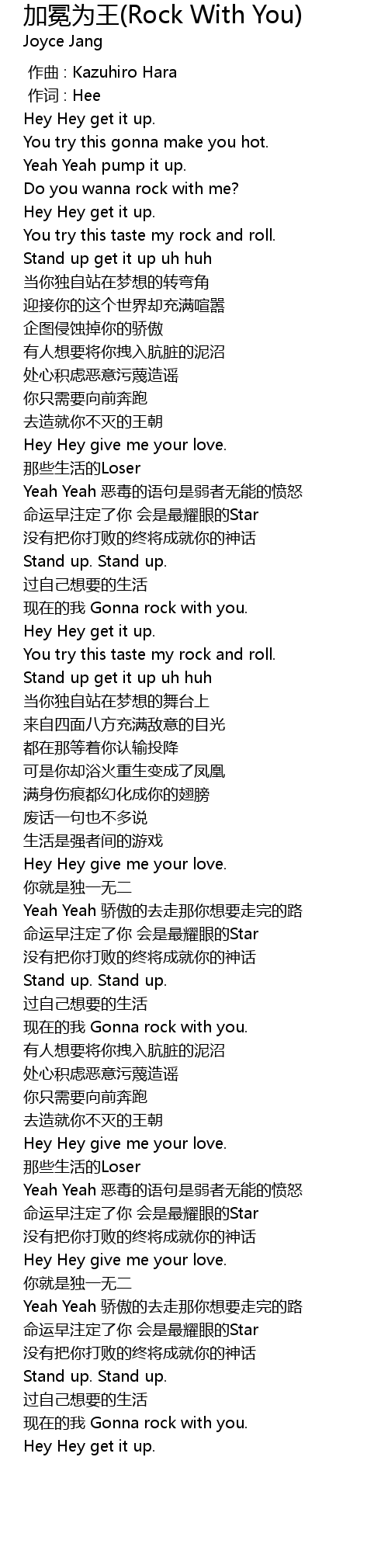 | [01:23.01] | xian zai de wo Gonna rock with you. |
