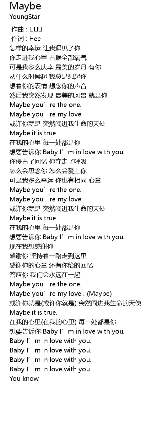 | [02:08.34] | Maybe you’re my love . (Maybe) |