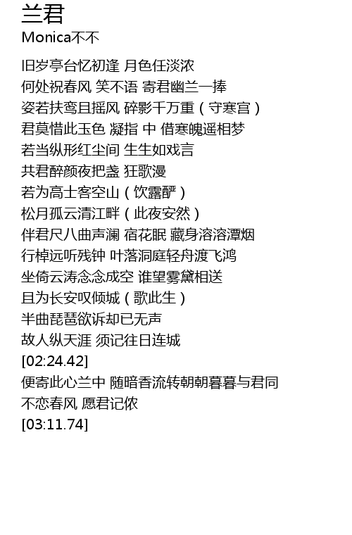 | [00:13.78] | 何处祝春风 笑不语 寄君幽兰一捧 |