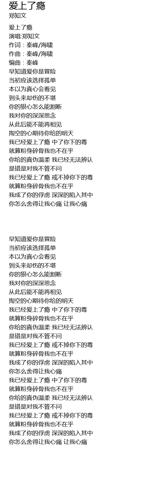| wǒ yǐ jīng ài shàng le yǐn zhōng le nǐ xià de dú | |