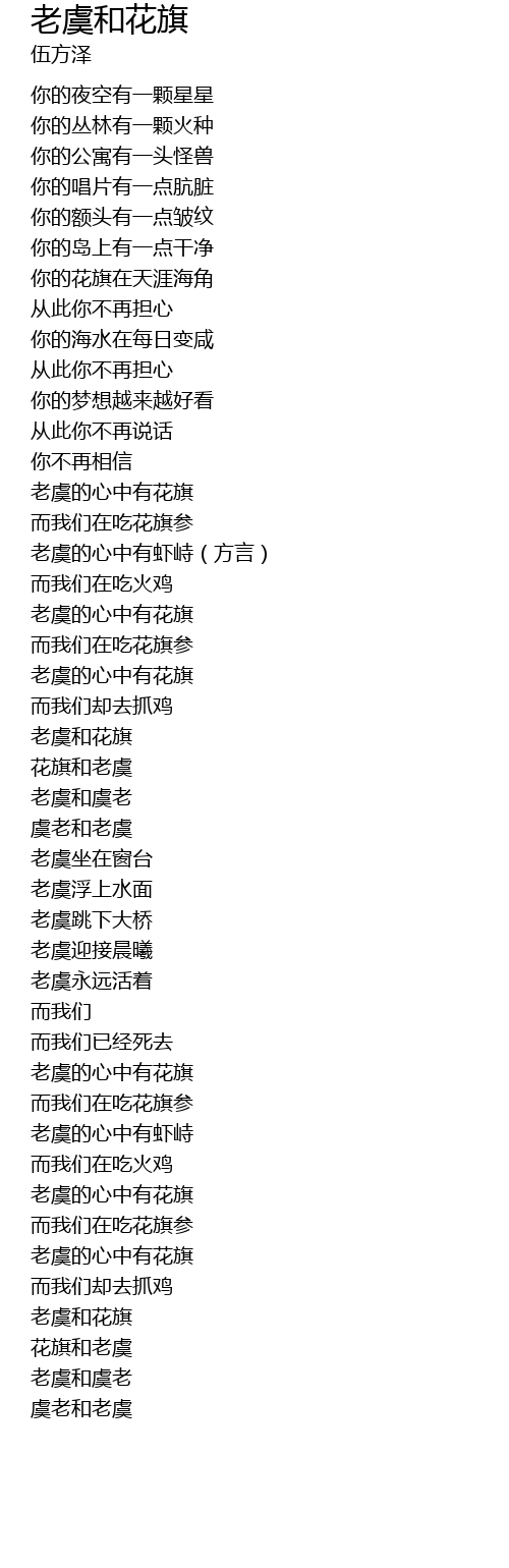 | [02:30.43] | lǎo yú de xīn zhōng yǒu huā qí |
