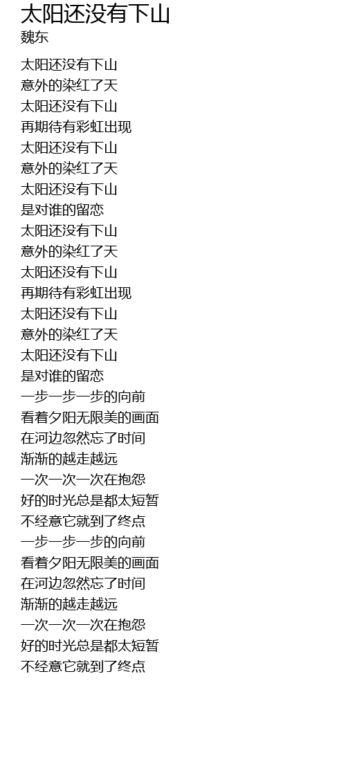 | [00:40.9] | tài yáng hái méi yǒu xià shān |