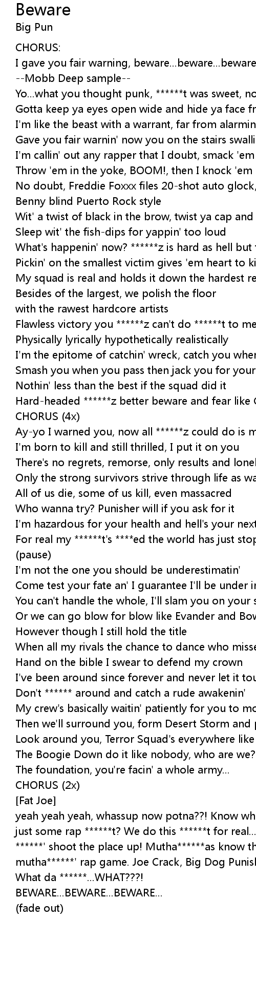 I gave you fair warning, beware...beware...beware... (2x)