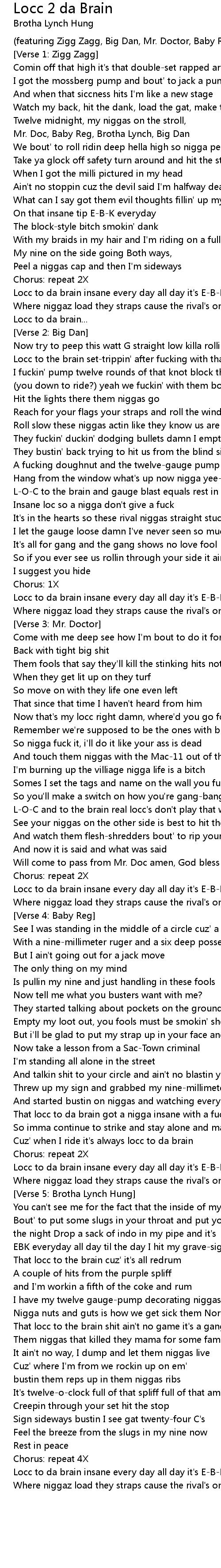 That locc to the brain shit ain't no game it's a gang
