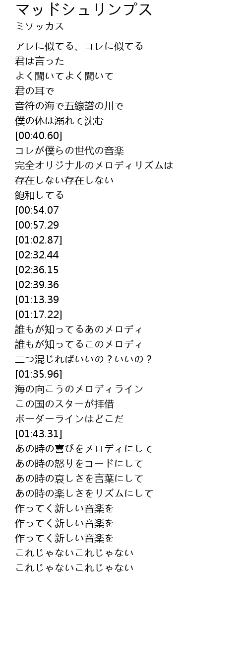 | [00:27.40] | アレに似てる、コレに似てる |