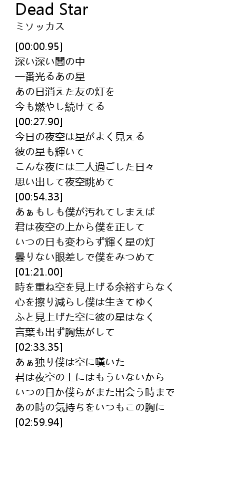 | [02:20.42] | ふと見上げた空に彼の星はなく |