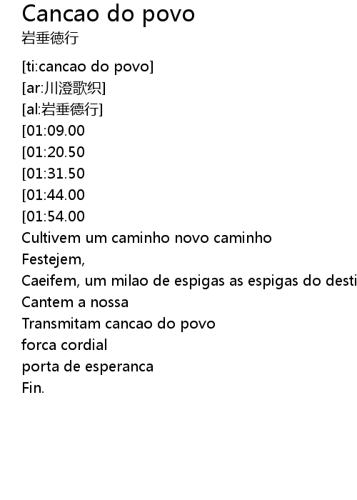 | [00:19.00][01:09.00] | Louvem! madrugada alma bela danca de terra |