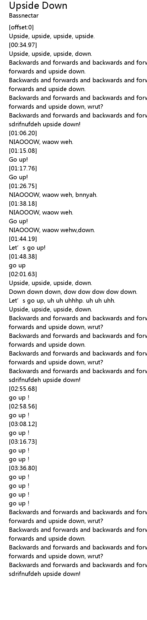 | [02:31.49] | Upside, upside, upside, down. |