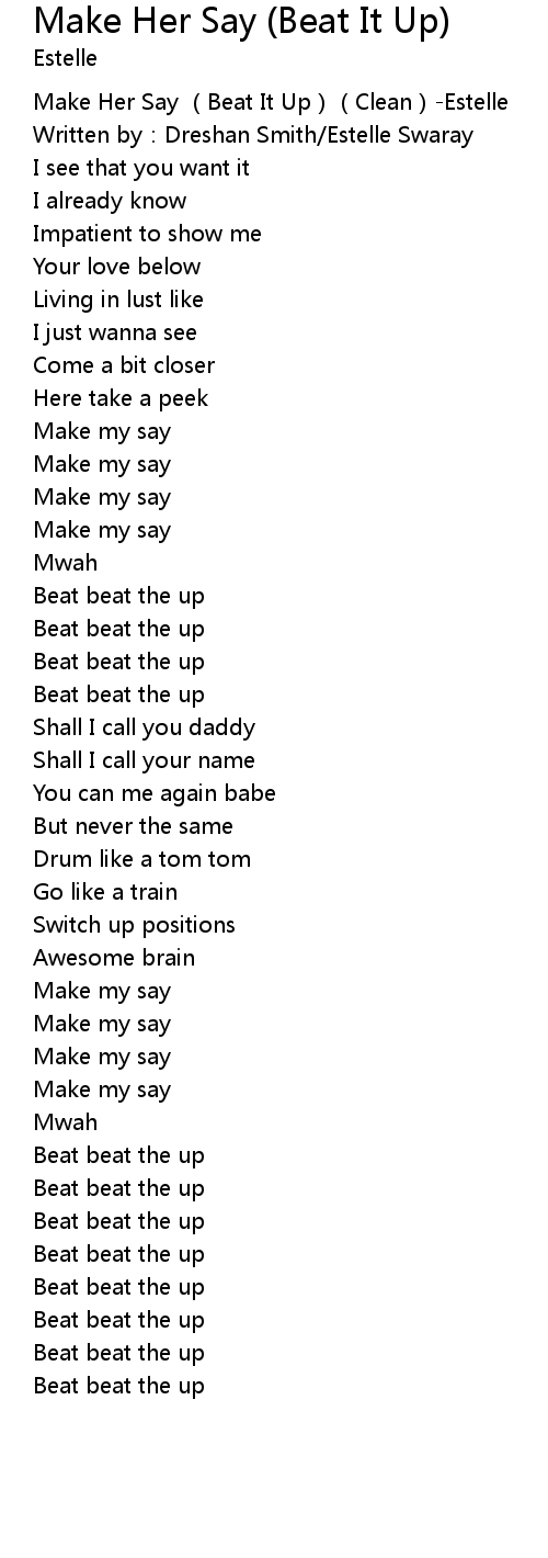 | [00:01.288] | Make Her Say Beat It Up Clean Estelle |