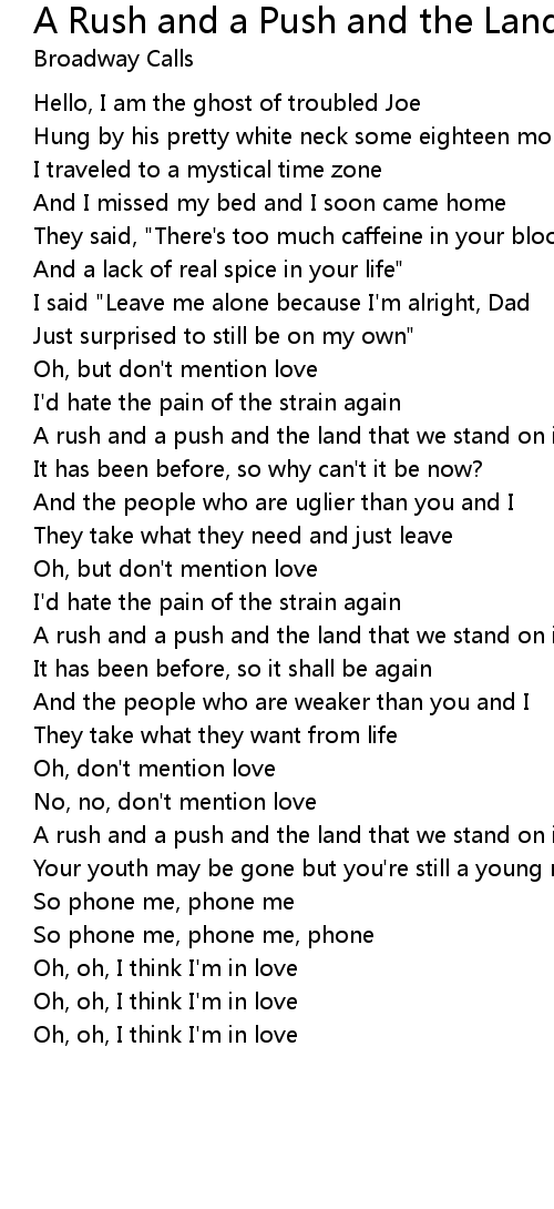 A rush and a push and the land that we stand on is ours |