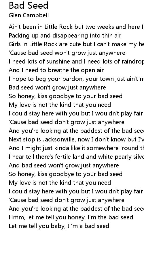 'Cause bad seed don't grow just anywhere |