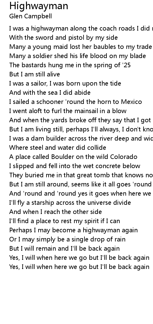 Perhaps I may become a highwayman again |