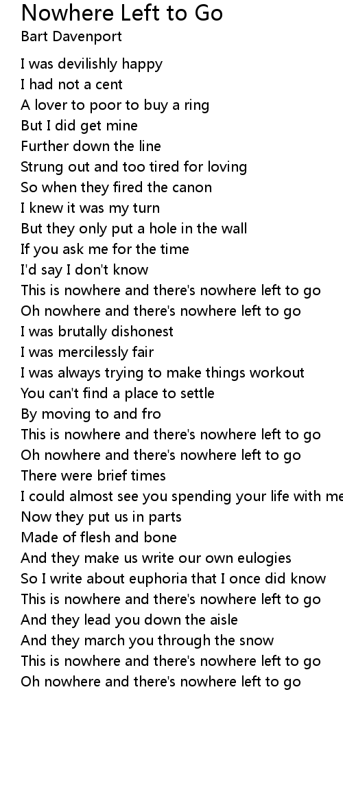Oh nowhere and there's nowhere left to go |