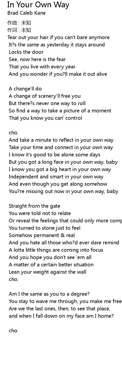 | Song | In Your Own Way |