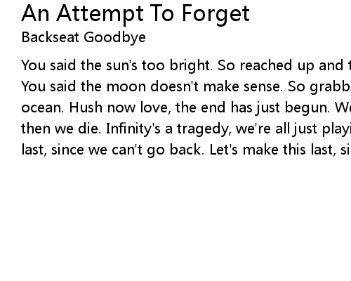 | Song | An Attempt To Forget |