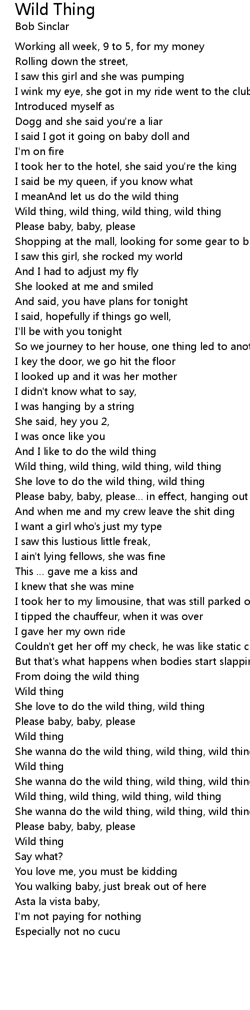 | She wanna do the wild thing, wild thing, wild thing | |
