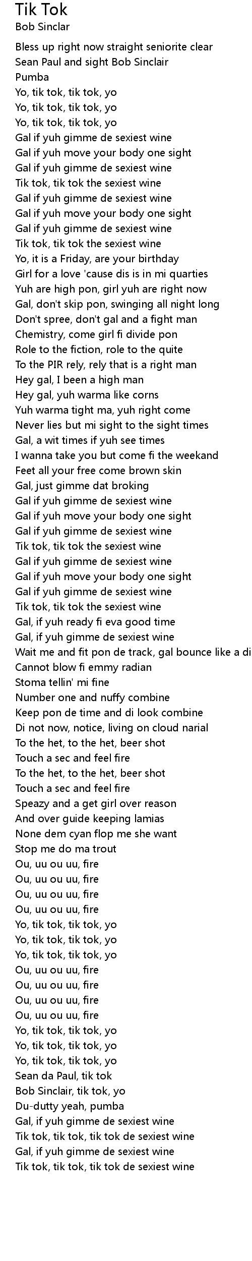 Bob Sinclair, tik tok, yo |