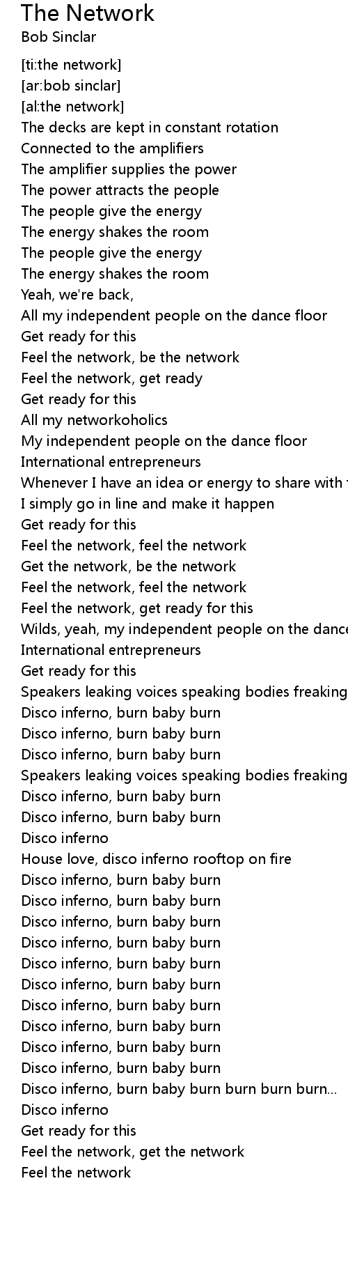 [03:00.44] Disco inferno, burn baby burn