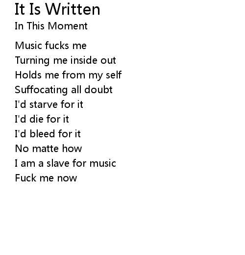 | Song | It Is Written |