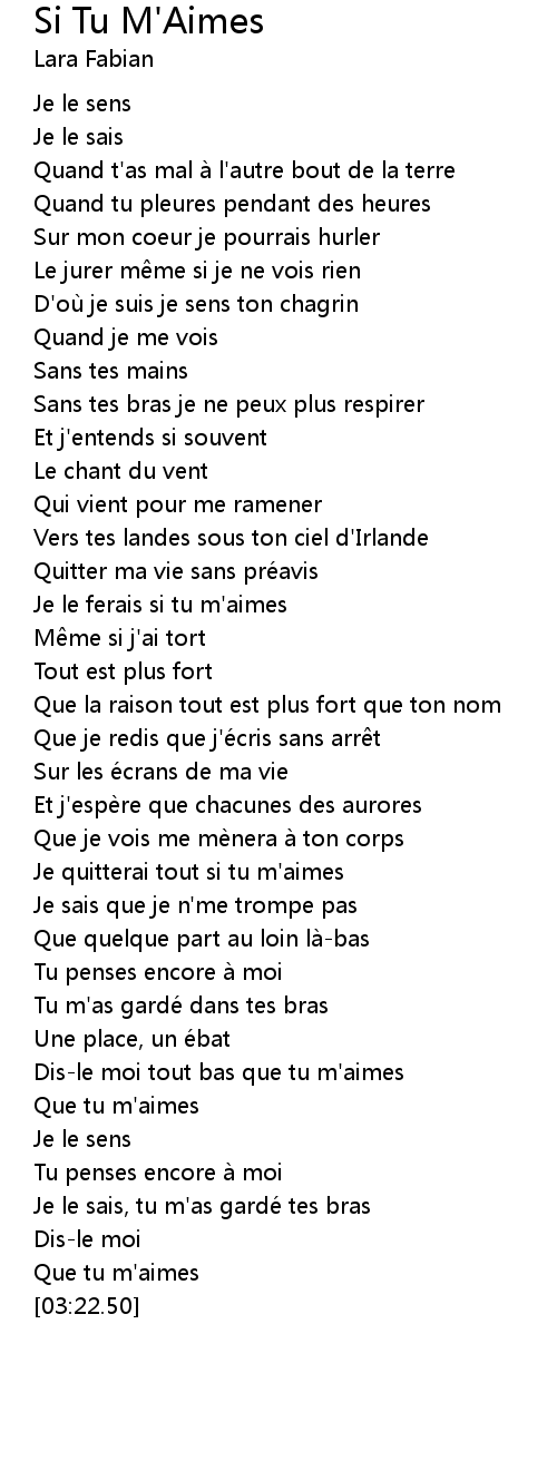 | [02:53.52] | Je le sais, tu m'as gardé tes bras |