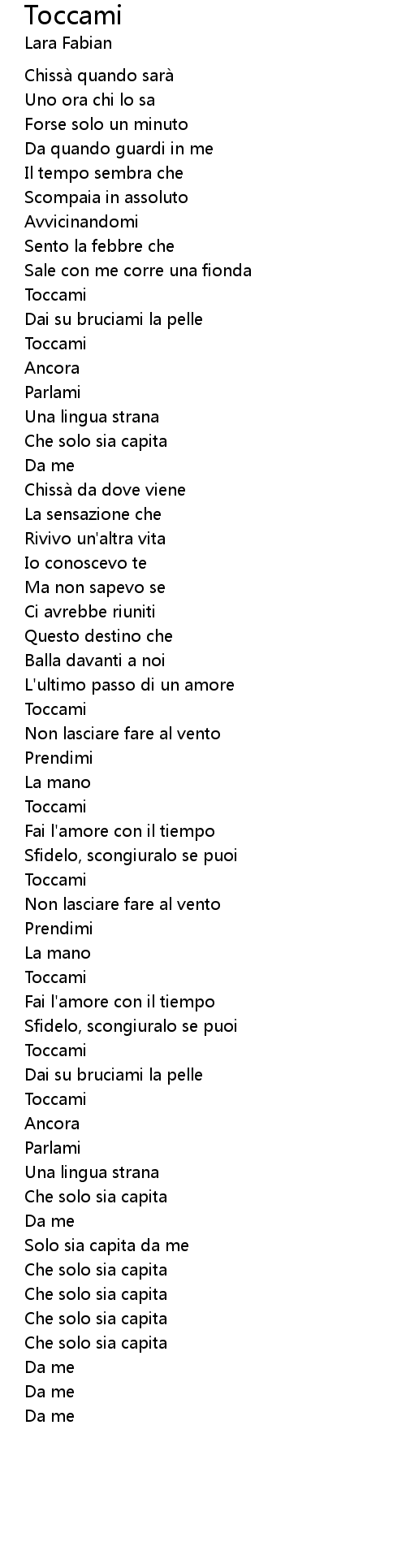 | Song | Toccami |