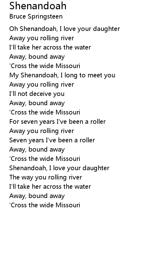 Oh Shenandoah, I love your daughter |