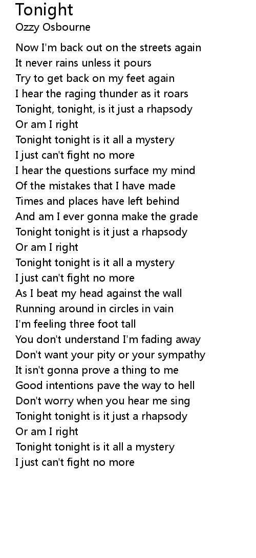Tonight tonight is it all a mystery |