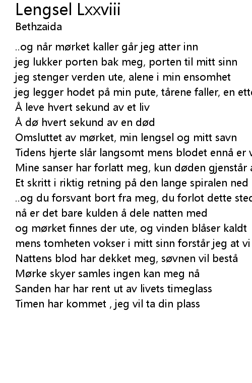 | Omsluttet av mørket, min lengsel og mitt savn | |