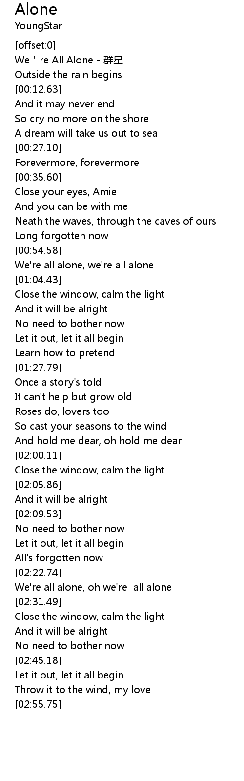 | [02:25.40] | We' re all alone, oh we' re all alone |