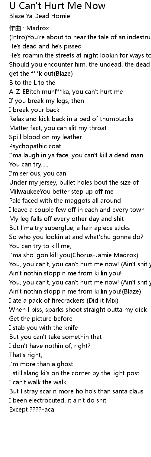 | You, you can' t, you can' t hurt me now! Ain' t shit you can do | |