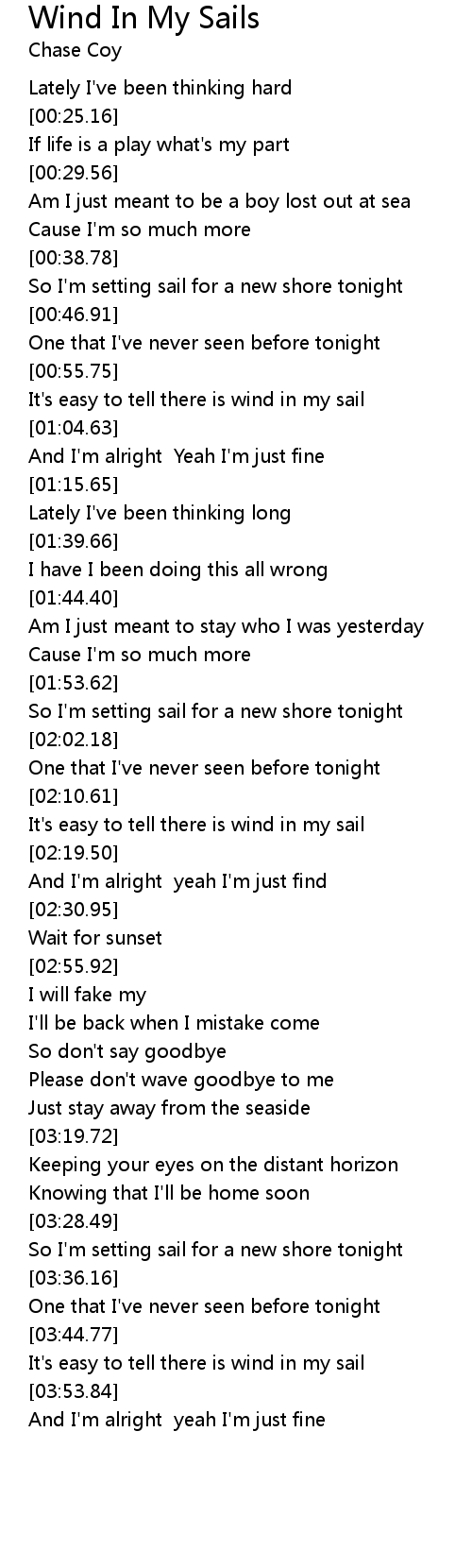 Wind In My Sails Lyrics