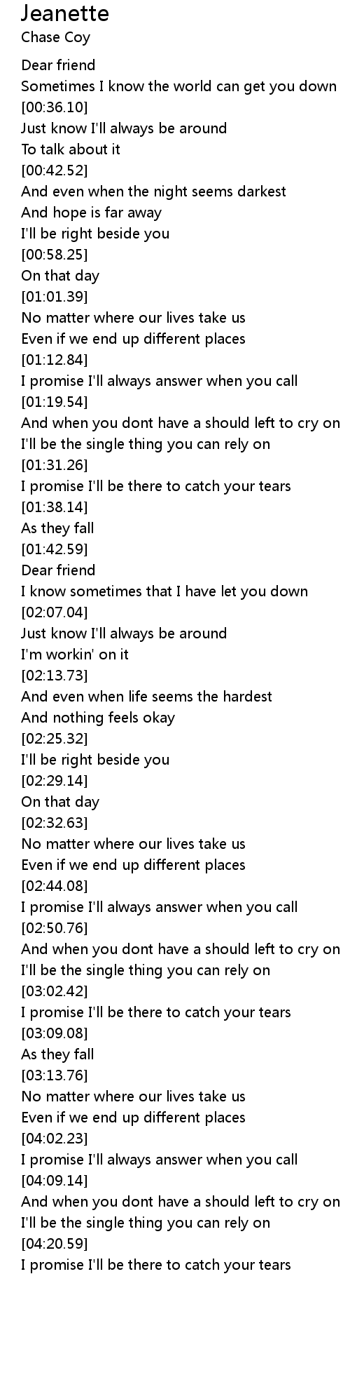 I promise I'll be there to catch your tears |