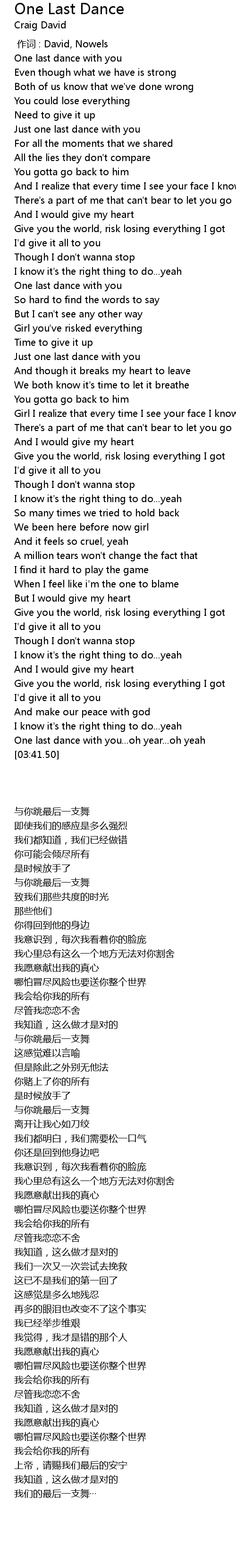 | [03:28.790] | One last dance with you...oh year...oh yeah |