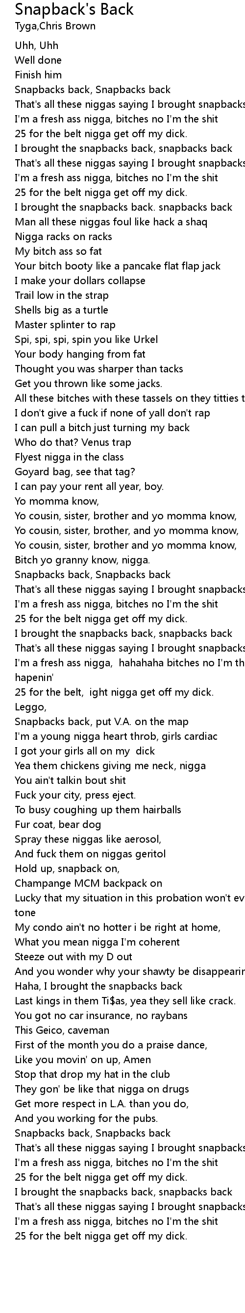 [00:15.52] That's all these niggas saying I brought snapbacks back