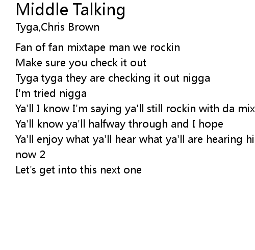 | [00:05.38] | Tyga tyga they are checking it out nigga |