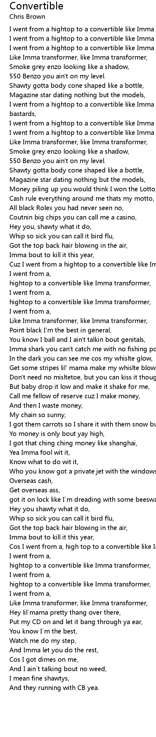Cuz I went from a hightop to a convertible like Imma transformer, |